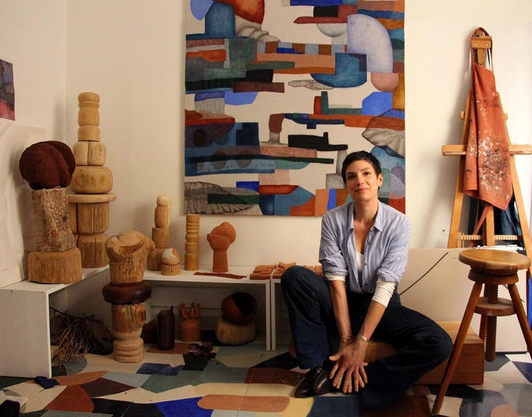 Dessiner, peindre, sculpter le bois, le plâtre ou l’argile, utiliser des textiles aussi bien que des objets glanés au cours de mes déambulations, sont autant d’outils à explorer, ces éléments concrêts du monde extérieur exprimant un monde intérieur infini, comme un canal secret vers un accouchement de l’inconscient.