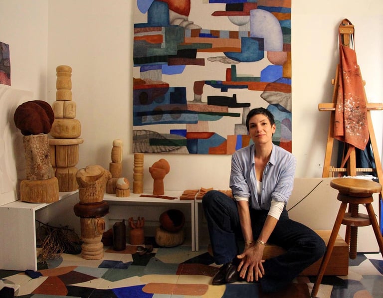 Drawing, painting, sculpting wood, plaster or ground, using textiles as such as objects I grab on my way, are tools to explore, all these concrete elements or material of the outside world expressing a world inside, like a means of transport, a means to bring to birth.