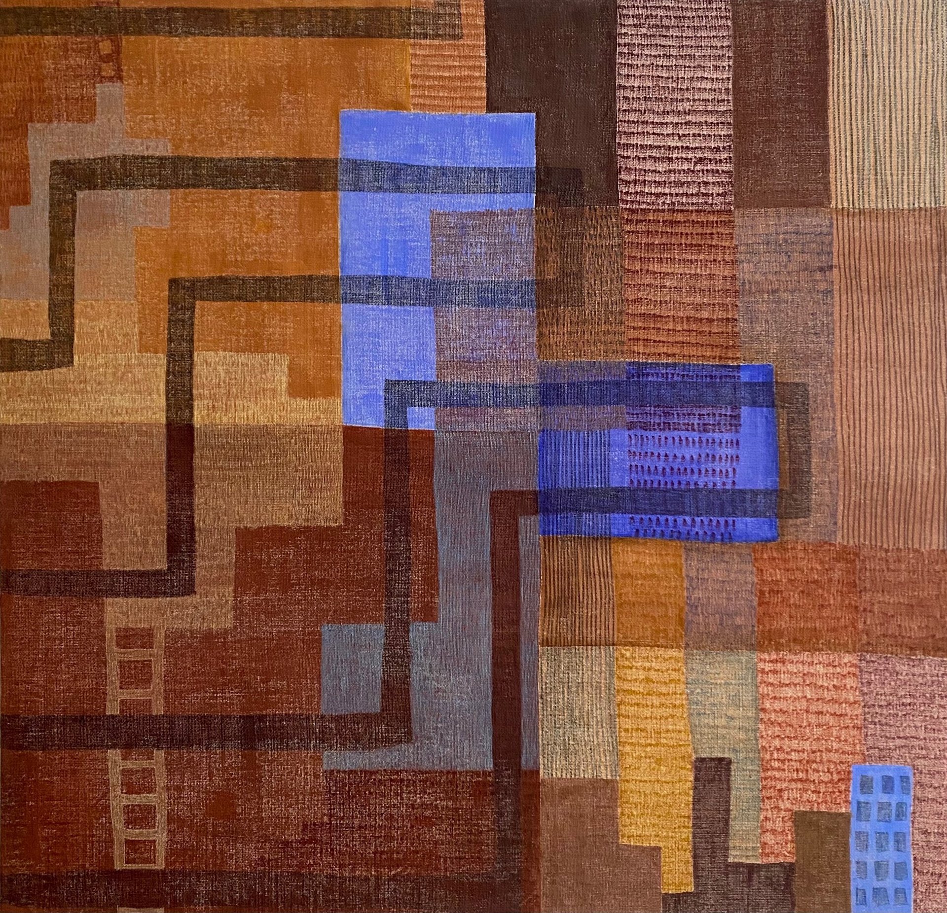 Acrylique et feutres sur toile de lin tendue sur châssis bois, env 100x110cm