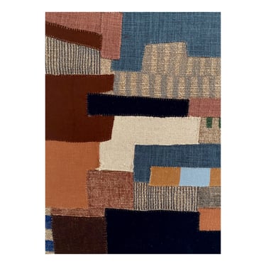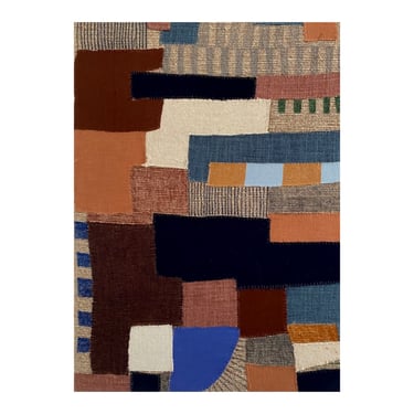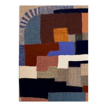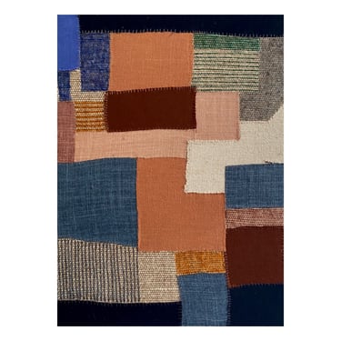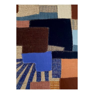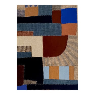 Collages textiles, broderies et feutres sur toile de lin tendue sur châssis, collection personnelle, 140x150cm